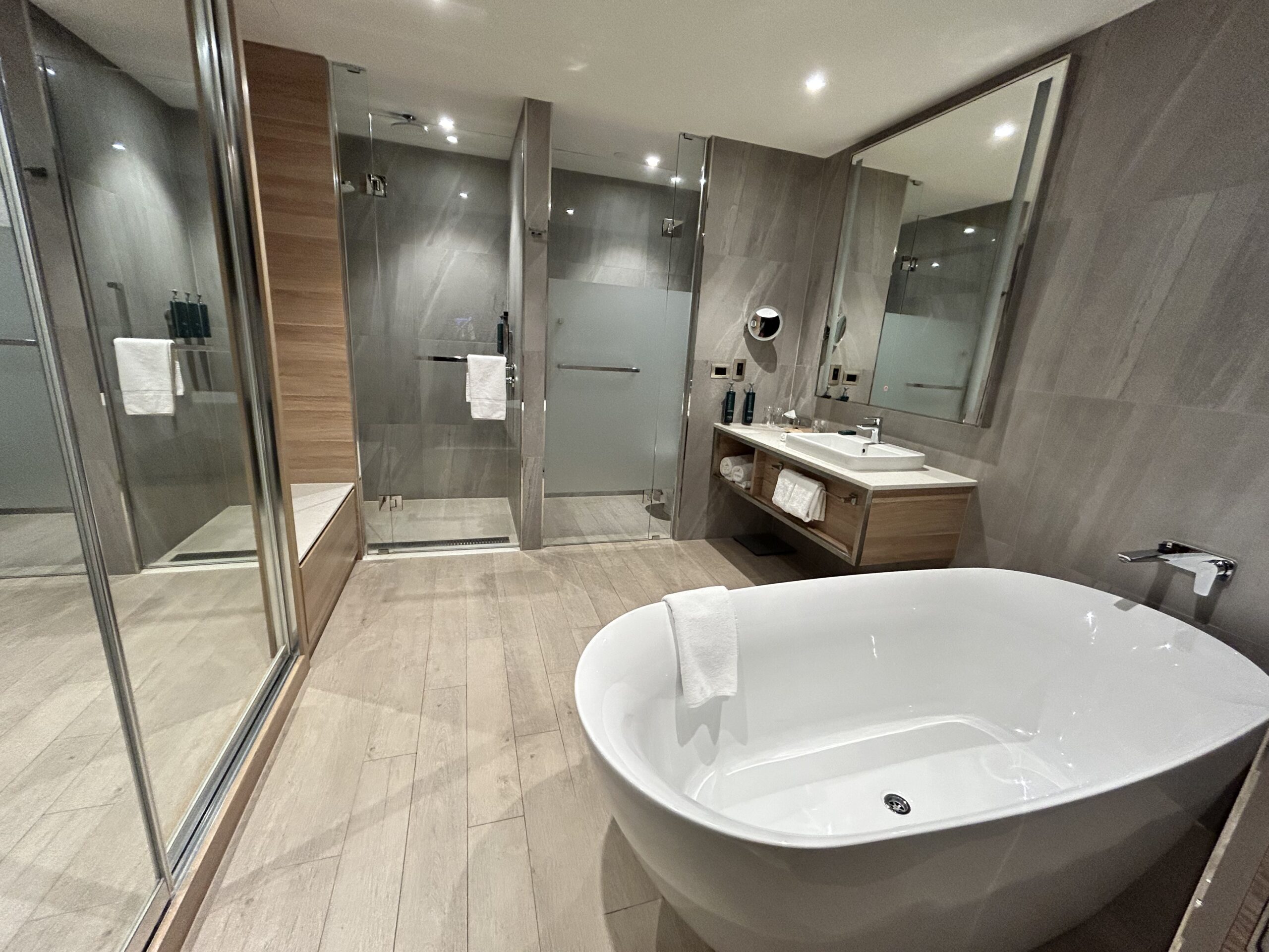 カードの年会費を一瞬で回収してしまいました。新しいホテルなのでお部屋はとても綺麗で、バスタブが独立した高級感のある作り。広々とした空間に、子供たちも大喜びでした。